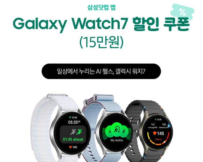 - 삼성 공식몰에서 갤럭시 워치7 15만 원 할인 쿠폰 활용