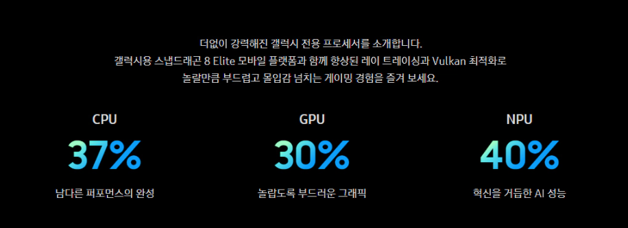 - CPU: 퀄컴 스냅드래곤 8 엘리트 (4nm 공정)