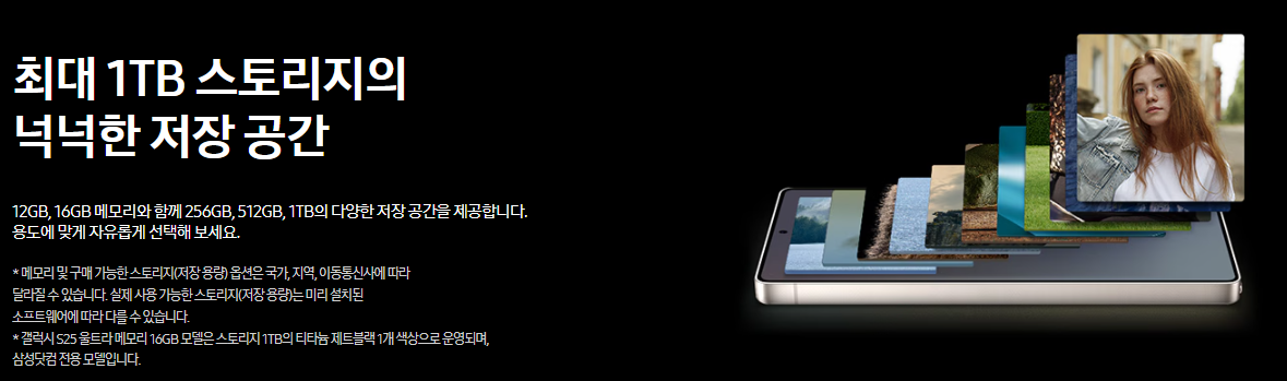 | 갤럭시 S25 Ultra | 16GB | 256GB / 512GB / 1TB |
