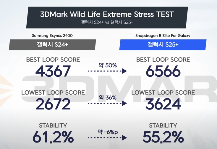 | 테스트 항목 | 갤럭시 S25 | 갤럭시 S24 | 차이점 |