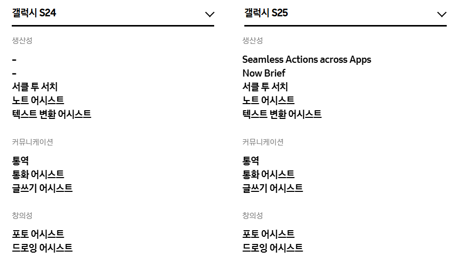 | 비교 항목 | 갤럭시 S25 | 갤럭시 S24 |