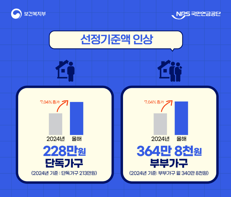 ✔ 소득 기준: 단독가구 228만 원 이하, 부부가구 364만 8,000원 이하