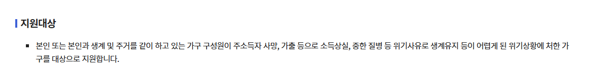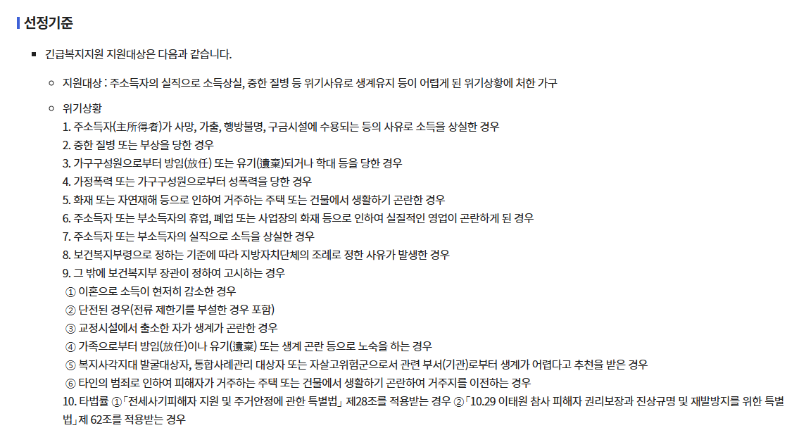- 기타 지자체가 판단한 긴급한 생활 위기