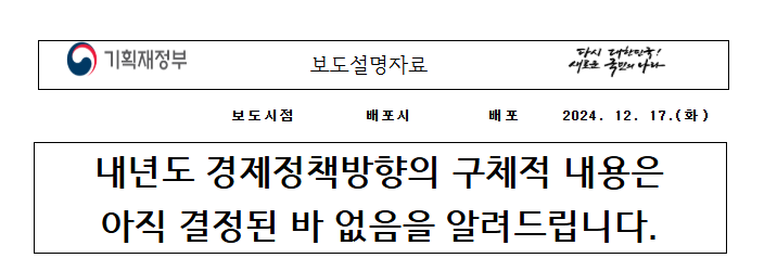 (보도설명) 내년도 경제정책방향의 구체적 내용은 아직 결정된 바 없음을 알려드립니다.