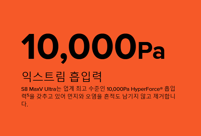 로보락 S8 MaxV Ultra는 HyperForce® 10,000Pa 흡입력을 갖추고 있어 강력한 청소 능력을 발휘합니다. 특히, VibraRise 3.0 물걸레 시스템은 고속 진동을 통해 바닥의 먼지와 오염을 효과적으로 제거하며, 카펫 청소에서도 높은 성능을 보입니다. 사용자는 "거실의 카펫에서 강아지 털까지 완벽히 제거된다"며, 바닥이 청소 후 눈에 띄게 깨끗해진다는 점을 강조합니다. 이외에도 다양한 바닥 유형에서 뛰어난 성능을 보여 모든 가정 환경에 적합합니다. 단, 최대 출력에서 소음이 다소 크다는 점은 일부 사용자에게 불편할 수 있습니다.