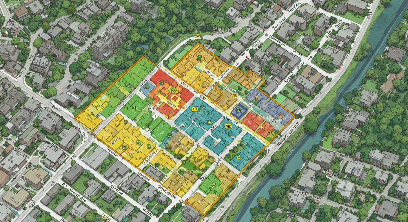 - 용도 분류: 주거용(R), 상업용(C), 산업용(M), 농업용(A) 등으로 구분.