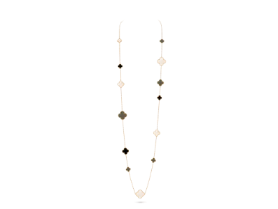 알함브라 목걸이는 고급 원석을 네잎클로버 모양으로 가공하고, 그 테두리를 작고 빛나는 구슬로 장식하는 것이 특징이에요. 심플하면서도 우아한 디자인 덕분에 '평생 할 수 있는 주얼리', '유행을 타지 않는 주얼리'라는 별명까지 얻었죠. 전 세계적으로 다양한 연령층에서 사랑받는 비결이랍니다. 반클리프 아펠의 더 많은 컬렉션은 공식 홈페이지 알함브라 컬렉션 페이지에서 확인하실 수 있어요.