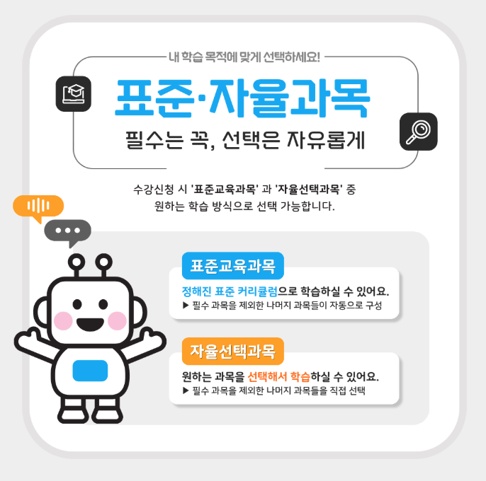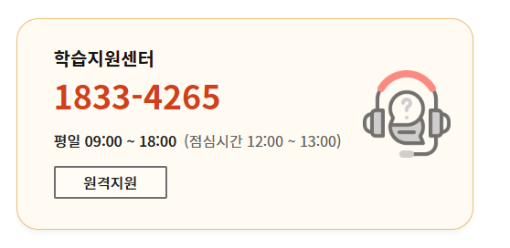 교육 신청이나 수강 중 문제가 발생하면 학습지원센터로 문의하세요.