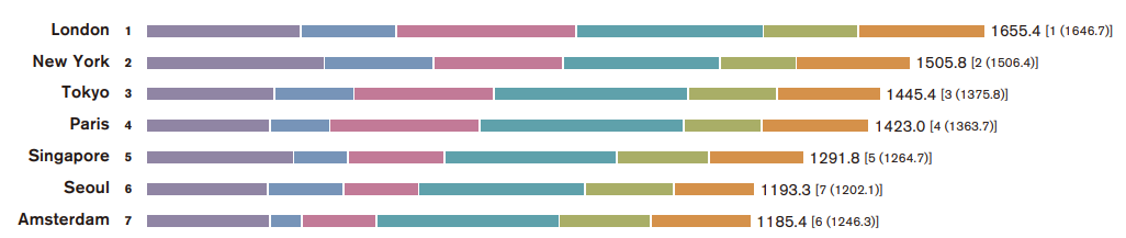 2024년 GPCI 상위 5개 도시는 작년과 동일하게 1위 런던, 2위 뉴욕, 3위 도쿄, 4위 파리, 5위 싱가포르로 나타났습니다. 서울은 암스테르담(작년 6위)을 제치고 6위를 기록하며, 다시 한번 세계적인 도시로서의 위치를 공고히 했습니다.
