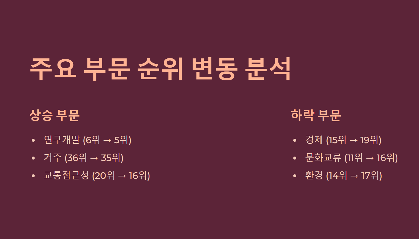 - 거주: 작년 36위에서 올해 35위로 상승.