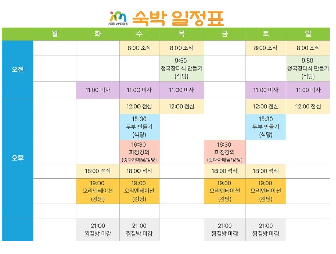일정을 정하기 전에는 반드시 숙박 가능 요일과 계절 제한을 먼저 확인하고, 필요한 개인 물품과 생활 환경을 충분히 고려한 뒤 예약하는 것이 좋습니다.