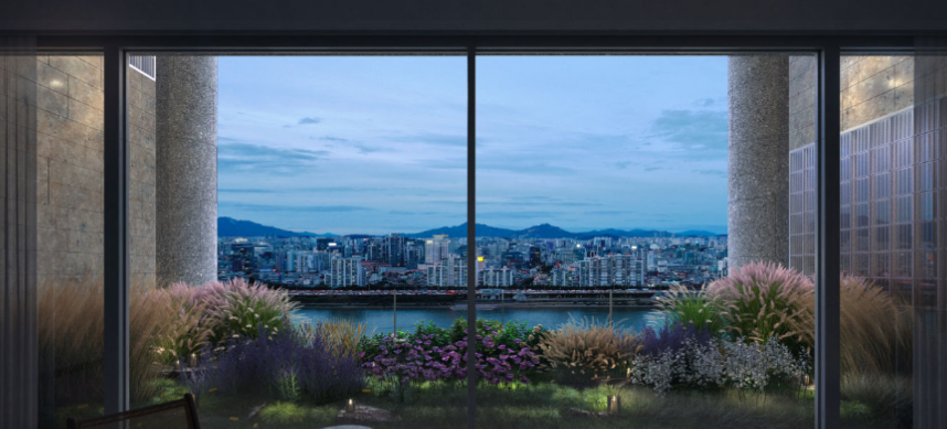 전 세대가 한강 조망권을 확보하고 있어, 거실이나 침실에서 파노라마 한강뷰를 즐길 수 있습니다. 이는 단지 설계의 핵심으로, 자연과 도시의 조화를 이끌어냅니다.