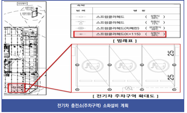 - 구획 설계: 전기차를 주차하는 공간과 충전소를 분리하거나, 고온에서 발생할 수 있는 위험 요소를 안전하게 차단할 수 있는 구획을 만들어, 화재 발생 시 빠르게 해당 구역을 격리할 수 있도록 합니다.