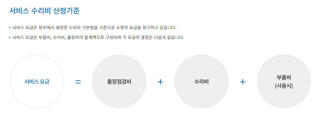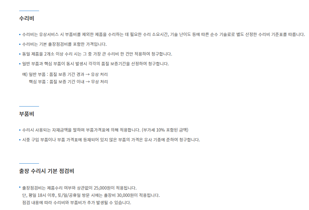 • 수리 진행 시: 출장비 + 수리비 + 부품비