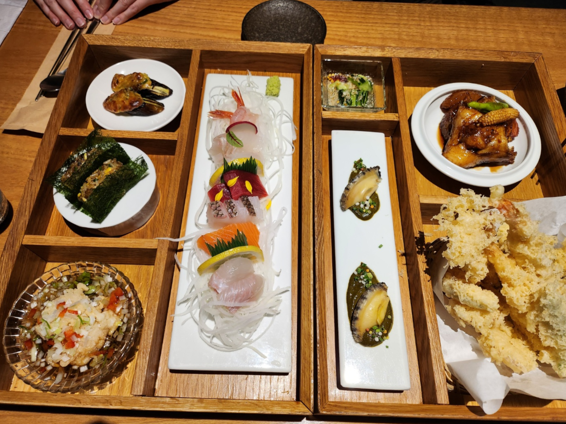 이후에는 신선한 사시미(회)와 해산물 요리가 이어집니다. 숙성된 도미, 광어, 연어 등이 적절한 두께로 썰려 나오며, 간장과 고추냉이를 곁들여 맛볼 수 있습니다. 여기에 해산물 구이나 튀김 요리가 추가되어 더욱 다채로운 맛을 경험할 수 있습니다.