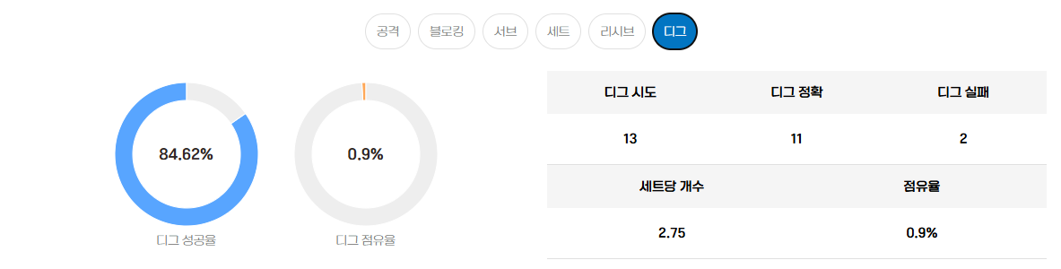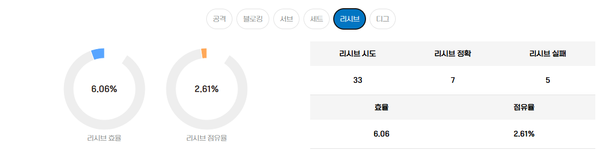 대신 디그와 리시브 효율, 블로킹에서의 안정감이 두드러집니다.