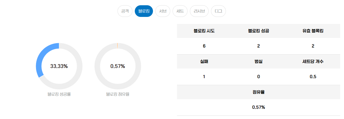 블로킹 Avg(set) 0.5는 센터 기준으로 보면 아주 높은 수치는 아닙니다.