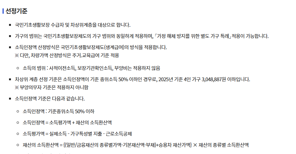 - 소득·재산 기준 충족 시 가능