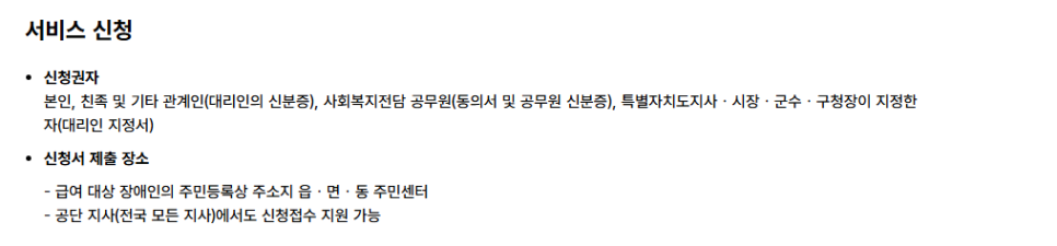 - 「장애인복지법」에 따라 장애 등록이 완료된 사람