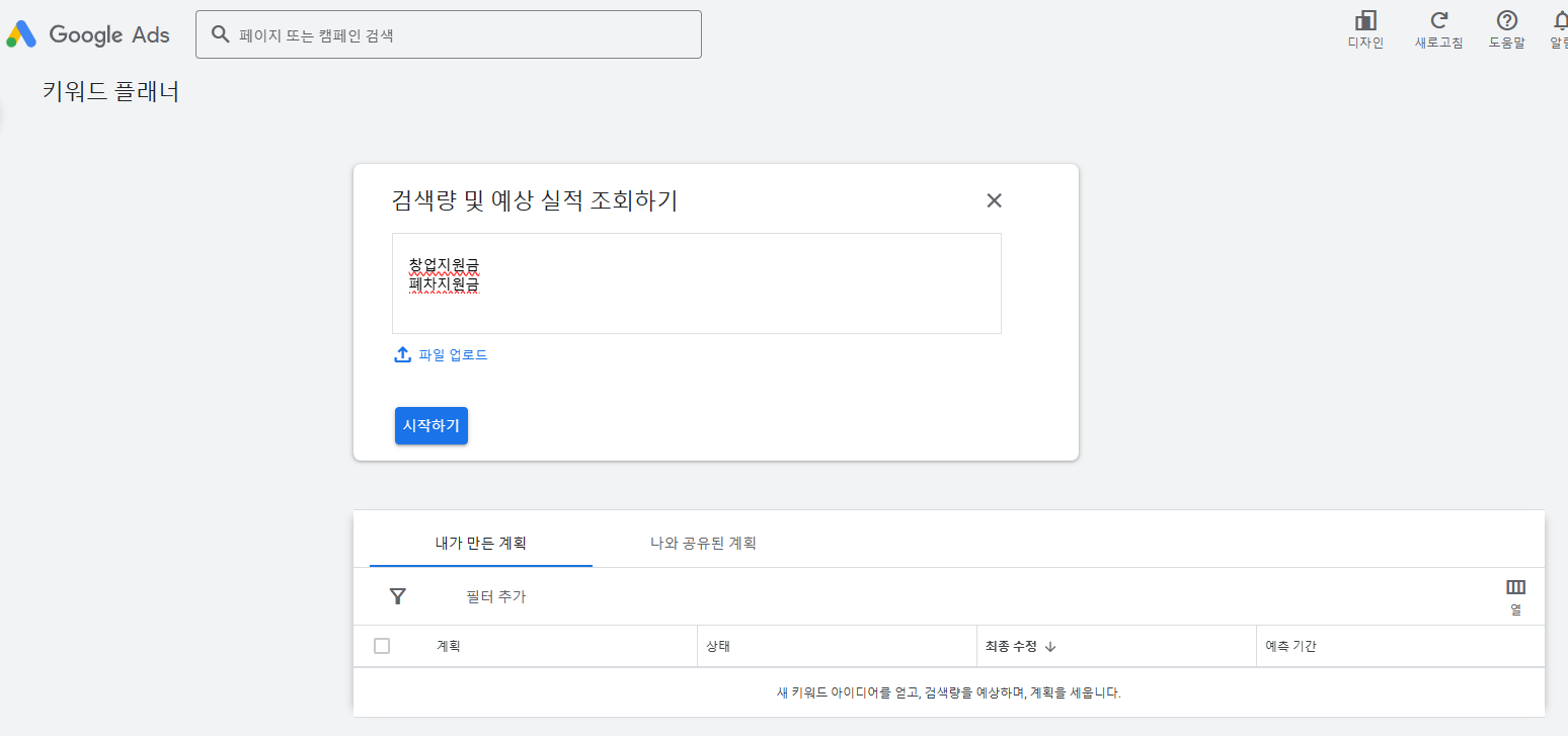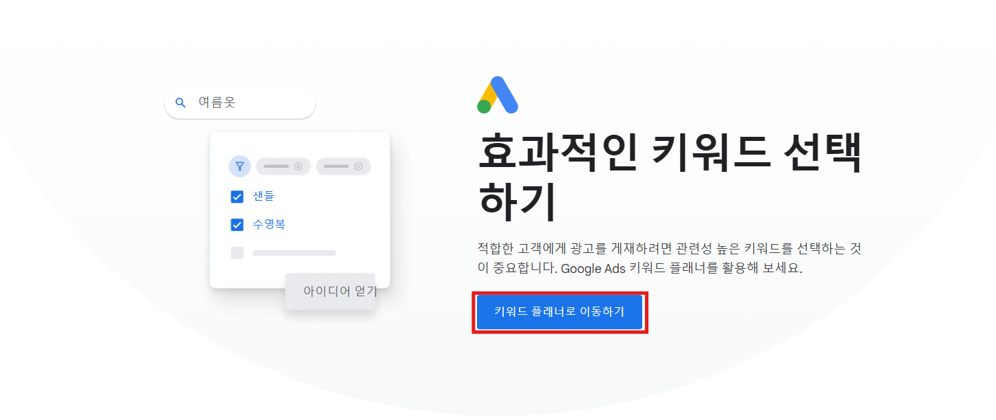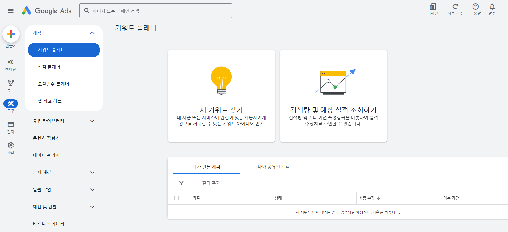 - 구글 키워드 플래너 공식 페이지에 접속합니다.