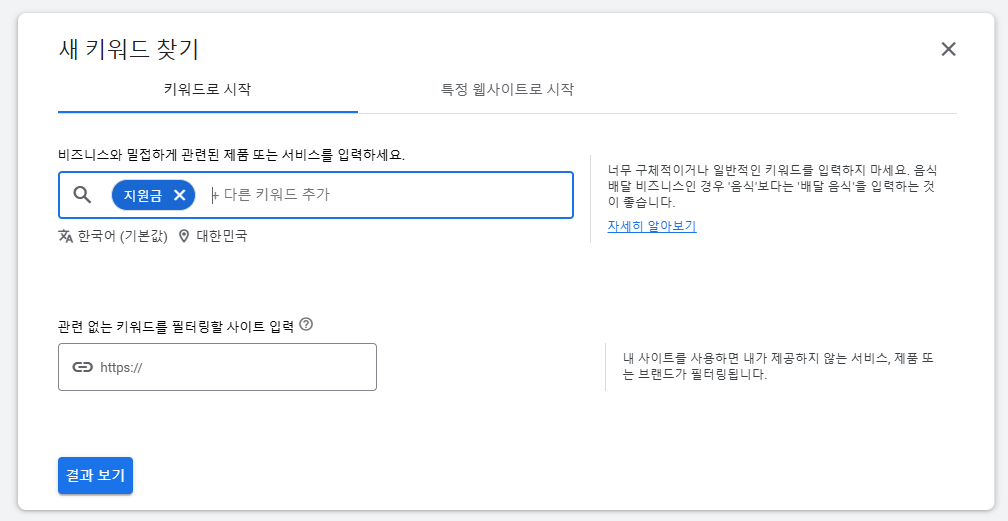 - 원하는 키워드를 입력한 후, 결과 보기 버튼을 클릭합니다.
