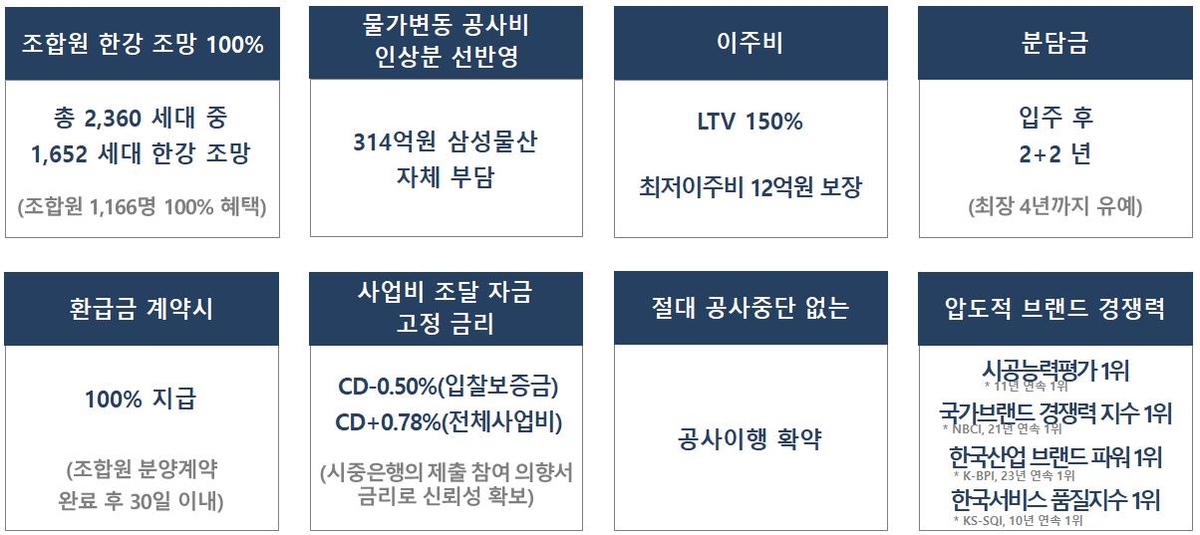 삼성물산은 조합원 표심을 사로잡기 위해 경쟁사 대비 차별화된 조건을 제시했습니다.
