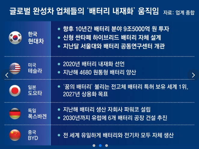 현대차의 배터리 직접 생산 전략은 글로벌 자동차 업계에서도 유사한 흐름을 보이고 있습니다.