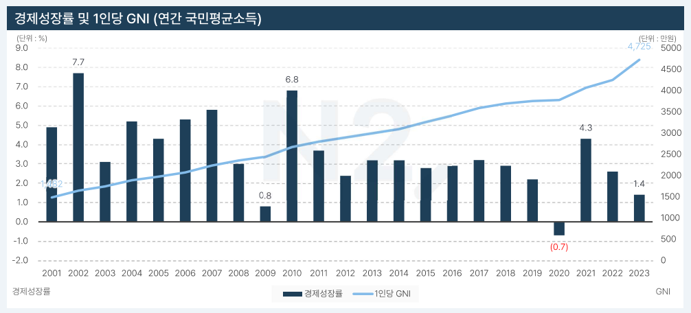 1인당 GNI는 2001년 대비 3.2배 증가