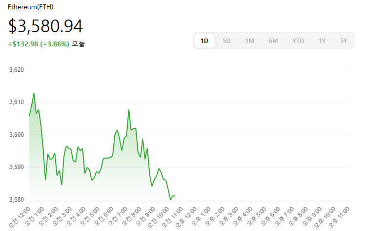 - 현재 시세: $3,580