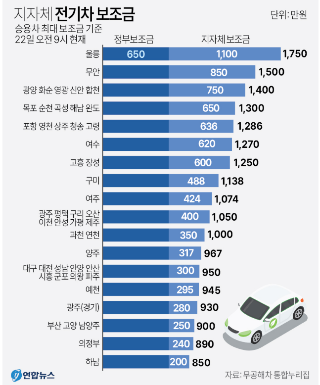 지자체 보조금은 지역에 따라 금액이 다양합니다.