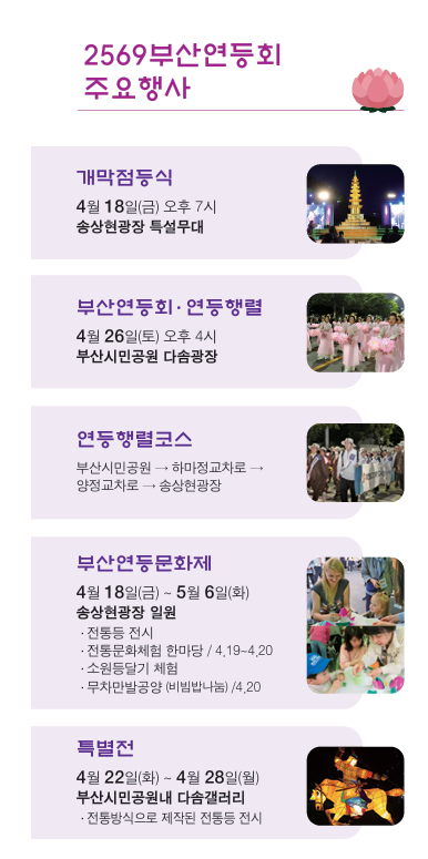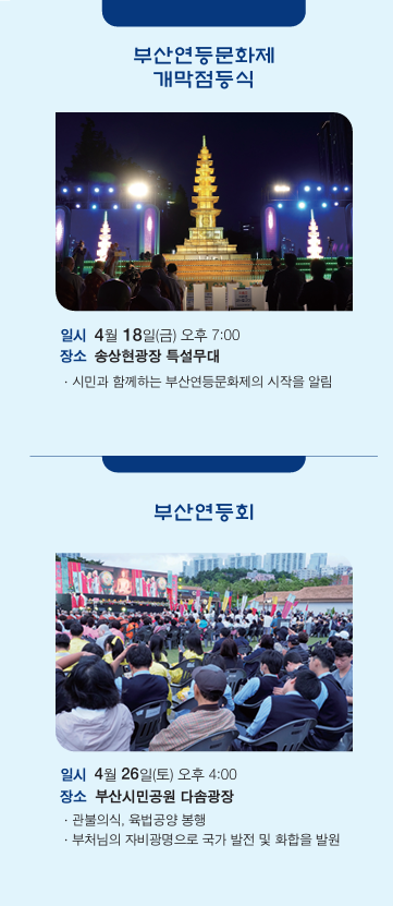 | 범어사 연등회 | 4월 27일(일) ~ 5월 12일(일) | 금정구 범어사 |