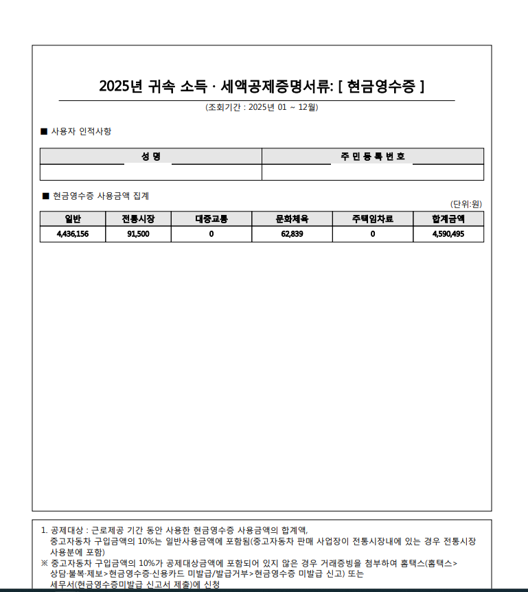 - 체크카드·현금영수증: 30% 공제
