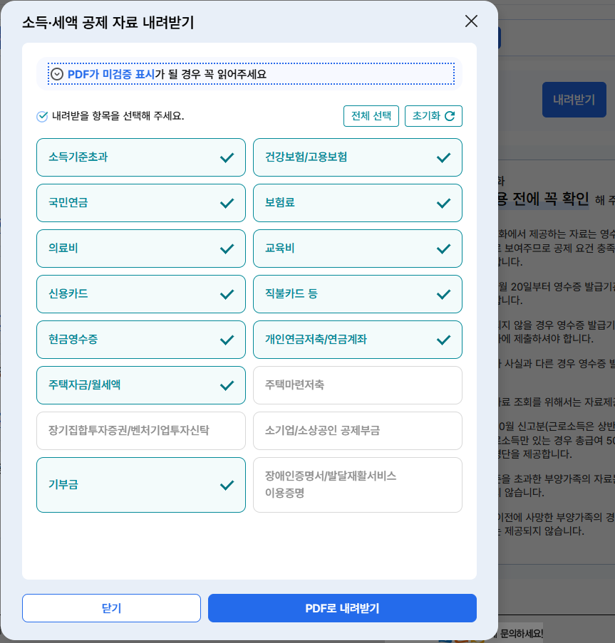 조회 가능한 45종 소득·세액공제 자료