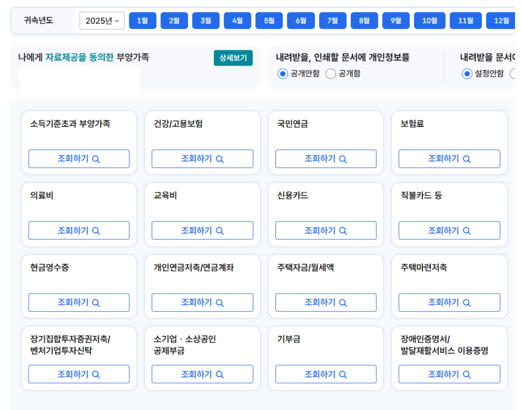 - 자료 조회: 각 소득·세액공제 항목을 클릭하여 지출 내역을 확인합니다.