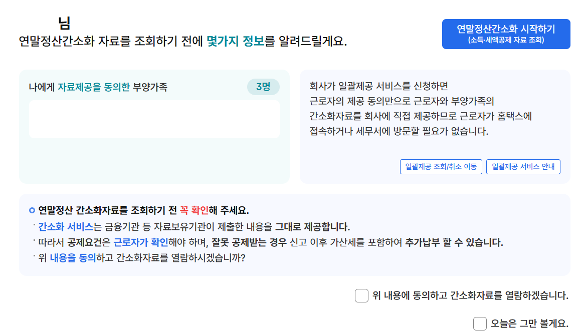 연말정산 간소화 자료 일괄제공 서비스